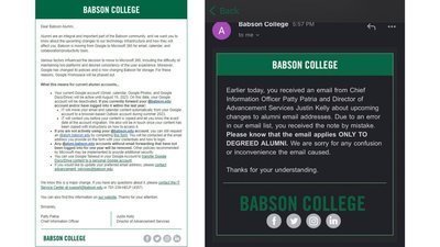 We are writing to express our concern and request regarding the email sent by Babson College on April 12, 2023 regarding the transition from Google to Microsoft 365 for email, calendar, and productivity tools. We want to highlight the substantial impact of this change on the numerous alumni and students who have deeply integrated their Babson Google accounts into their personal and professional lives.