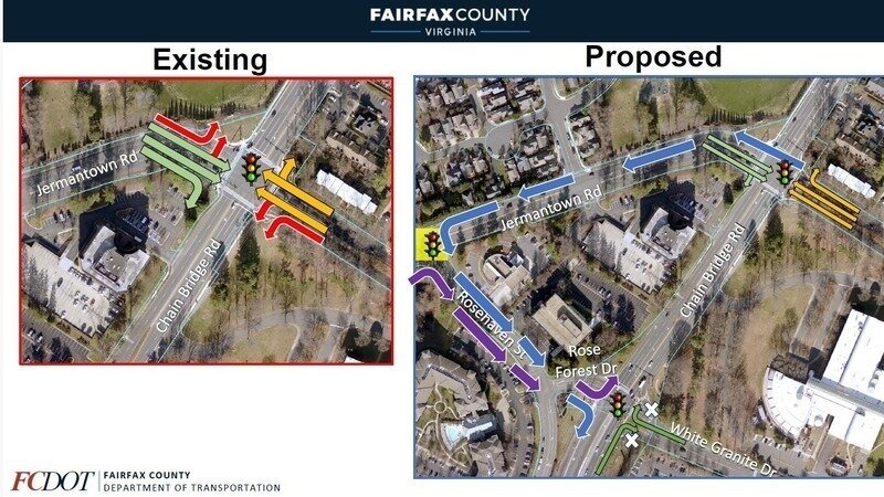 Fairfax County presenters did not present any solutions to the above traffic concerns except for improving sidewalks around the immediate site and re-routing Jermantown Road through Rose Haven and Rose Forest Drive. Their proposal was not well received by the community.