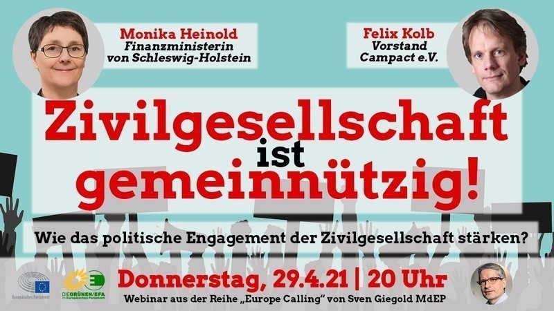 Ein schwerer Schlag: Change.org wurde die Gemeinnützigkeit entzogen. Das geht an die finanzielle Substanz. Auch anderen zivilgesellschaftlichen Organisation droht der existenzgefährdende Entzug. Wie schützen wir künftig die Zivilgesellschaft? Das diskutieren wir im Webinar mit Schleswig-Holsteins Finanzministerin & dem Campact-Chef. Seid hier dabei!