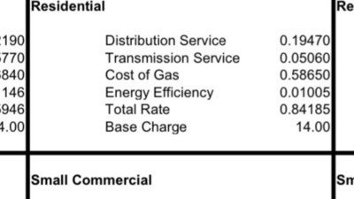 We began researching and found that our gas cost rate had changed from .5865 to .9474 in October. That is a 61.5% increase!!! The overall rate changed from .84 to 1.202 which is a 43% increase.