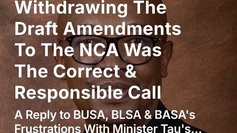 As promised, I’ve published it in my newsletter, exactly as written. It explains why withdrawing the draft amendments to the National Credit Act was the correct and responsible call, despite the noisy pushback from Big Business and the Banks. This is about ordinary people (you, me and almost 200 thousand of us) winning a critical fight against powerful people.