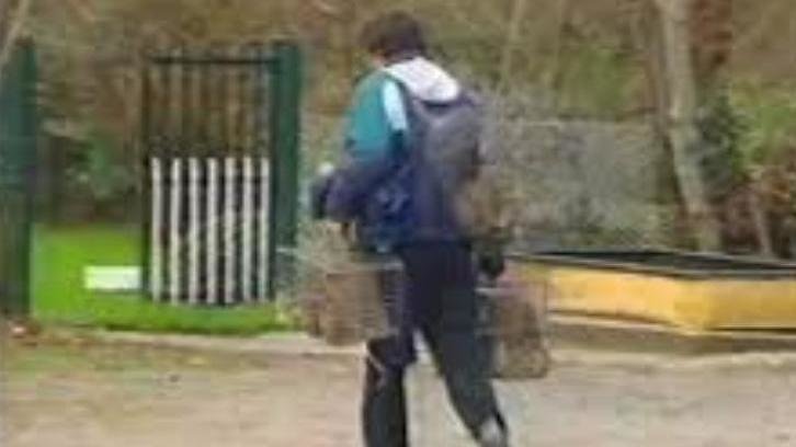 The "still" is from the footage, showing the trainer concerned carrying several cages of live rabbits. Not only is the Irish government permitting cruel hare coursing...but people like this guy are openly involved in Ireland's greyhound industry.