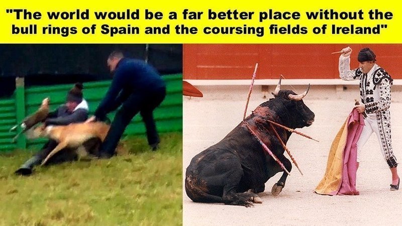 The Matador, despite his cruel act, is revered for his supposed heroism. Coursing is cowardly from beginning to end, with not even the pretense of bravery on the part of those who make our iconic Irish Hare suffer for their amusement.