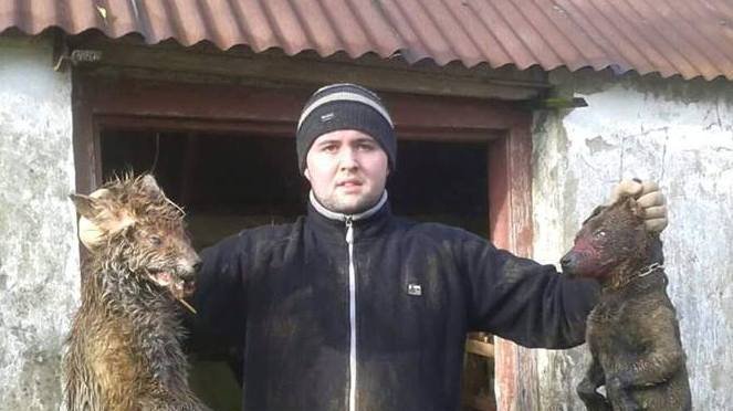 Hares are ripped apart by the pack after a long chase. Foxes have the skin ripped from their bones, and the ones that escape underground are unearthed with the aid of spades ad terriers, as shown in the picture, and tossed to the pack.