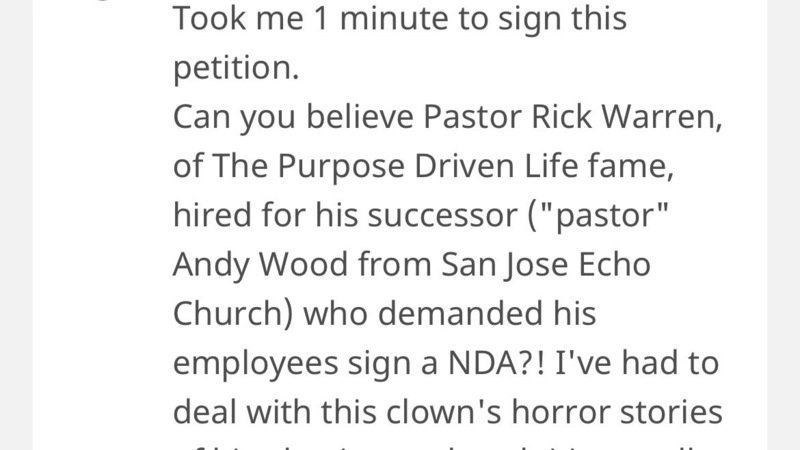Petition updatePetition to Release Former Echo.church Employees from Non-Disclosure AgreementsThanks for signing, commenting and sharing