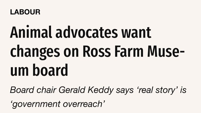 Also, thank you to Suzanne Rent from the Halifax Examiner for her recent article titled “Animal advocates want changes on Ross Farm Museum board”. This article is very detailed, a wealth of information for those interested in learning more about our current efforts.