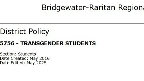 At the last meeting on May 13, it became clear that Policy 5756 is not necessary. This is reflected in the district policy manual online (see attached screenshot). So it is entirely the local school board's decision—not Trenton’s—what to do with the policy. Tell our school board members: listen to the people in Bridgewater-Raritan, not Trenton activists. Repeal the policy entirely.