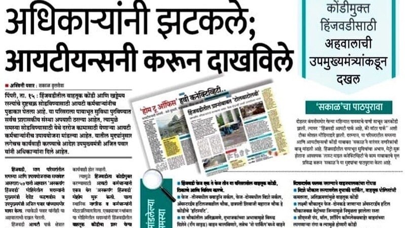 *🚦#UnclogHinjawadiITPark Team's 57 Pager Document submission to CM, DCM on 10th July'25 is picked by Media.*