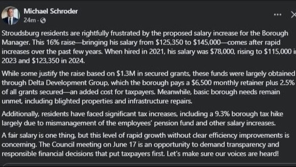 Attention Stroudsburg Borough Residents - A 16% salary increase has been proposed for the Borough Manager, raising the salary from $125,000 to $145,000.