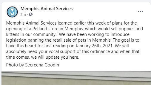 Memphis Animal Services Statement re: Petland