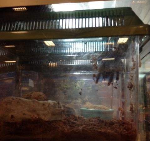 As a tarantula enthusiast and a human being with decency, the way the arachnids and scorpions (invertebrates) are kept at PetSmart is atrocious. The tarantulas and scorpions at all PetSmart establishments are housed in 3 by 5 plastic containers (THE SAME CONTAINERS THEY SELL AS "CRICKET KEEPERS") and stacked upon each other. The creatures barely have enough room to move. To exemplify the extremity of this, the photo of an Avicularia tarantula which is arboral tree/high elevation dwelling spider who needs a vertical tank of multiple feet to sustain and is being forced to survive in the aforementioned "critter keeper" solely acceptable for feeder insects.