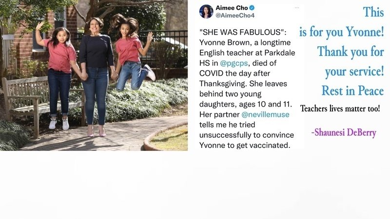 This hits home. Although I’m not a educator I do have two daughters like Yvonne Brown longtime Parkdale High School English Teacher for PGCPS. She lost her life the day after Thanksgiving due to COVID-19. This petition is for HER as well.