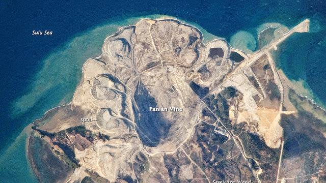 BIGGEST PIT. The Panian Mine operated by Semirara Mining Corp is the biggest open-pit coal mine in the Philippines. Image from NASA