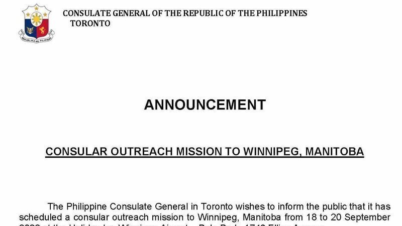 Thank you for your patience as we wait for an accessible Philippine Embassy for all our consular needs in the province of Manitoba.