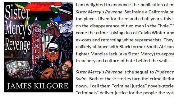 You can now purchase my latest novel, Sister Mercy's Revenge, a crime thriller set inside a California state prison. Available in Kindle or paperback https://www.amazon.com/Sister-Mercys-Revenge-James-Kilgore/dp/1536835110/ref=sr_1_1?ie=UTF8&qid=1472701349&sr=8-1&keywords=Sister+Mercy%27s+Revenge
