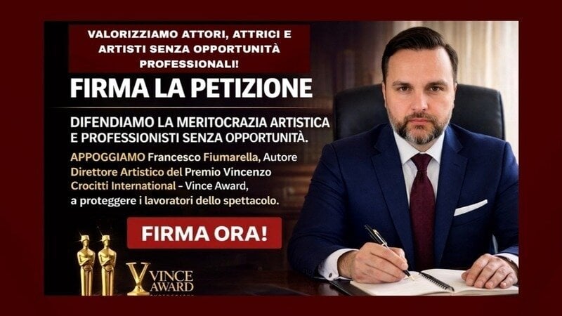 Francesco Fiumarella conosciuto,per essere autore, direttore artistico e generale del Premio Vincenzo Crocitti International – Vince Award, oltre talento Scout, promuove una petizione nazionale per un cambiamento radicale nel sistema dello spettacolo italiano. Questo appello è rivolto a tutti voi: attori, attrici, artisti e professionisti del settore che, come Francesco, avete sperimentato le iniquità di un sistema che troppo spesso nega il riconoscimento del merito.