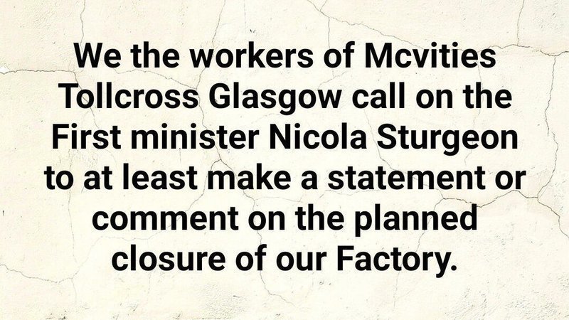 Mise à jour sur la pétitionHelp stop the closure of Mcvities Tollcross Glasgow, "SAVE OUR JOBS"Where are you Nicola Sturgeon