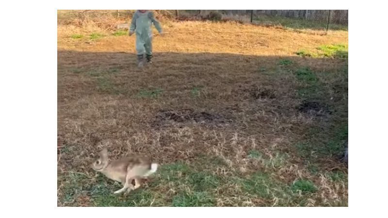 Here the Millers can be seen filming and encouraging their daughter chasing and terrorizing a wild rabbit like a predator while the rabbit can't escape what appears to be a fenced in yard. The Millers enjoy filming this chase for likes and shares and delusionally refer to it as "rescuing a wild rabbit".