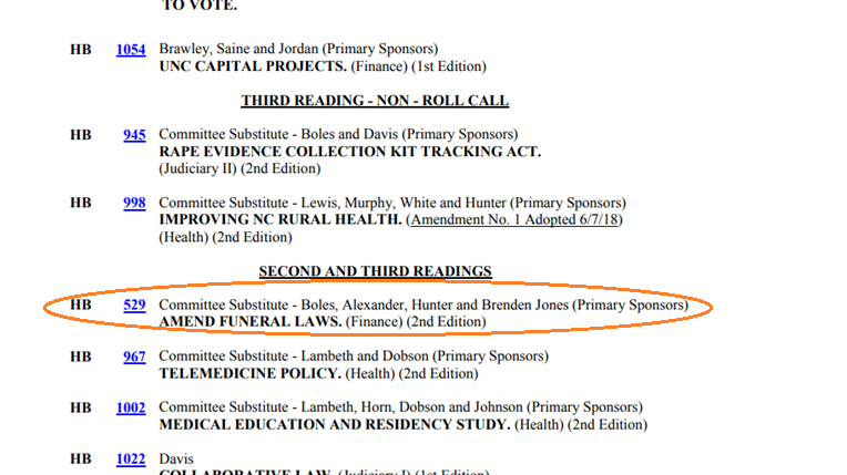 We received verbal communication and a copy of our House calendar for tonight; House Bill 529, to amend the funeral law, is on the agenda to be voted on tonight. We will be tuning in and will be able to provide an answer immediately on whether this is going to the Senate! Thank you to everyone who has supported this petition and helped our voices be heard!