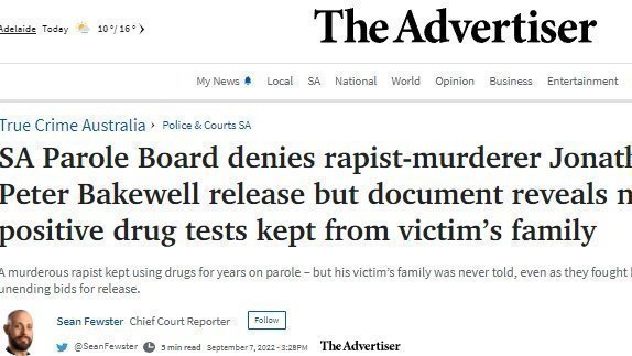 But I kept fighting, and on 7 September, after a three year campaign by myself and The Advertiser, the Parole Board of South Australia finally refused Bakewell’s latest parole application.