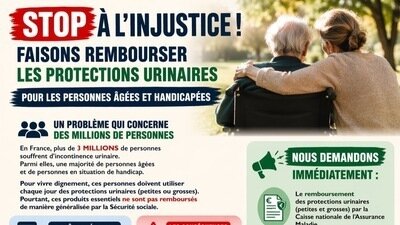 Pour vivre dignement, ces personnes doivent utiliser chaque jour des protections urinaires (petites ou grosses). Pourtant, ces produits essentiels ne sont pas remboursés de manière généralisée par la Sécurité sociale.