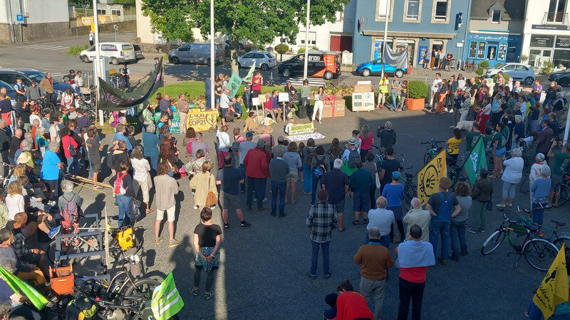 La présence festive des cyclistes d'Alternatiba a été particulièrement appréciée. Ceux-ci ont été impressionnés par l'ampleur de la mobilisation. Après avoir fait escale à Pluvigner, ils ont repris leur vélorution en direction de Lorient.
