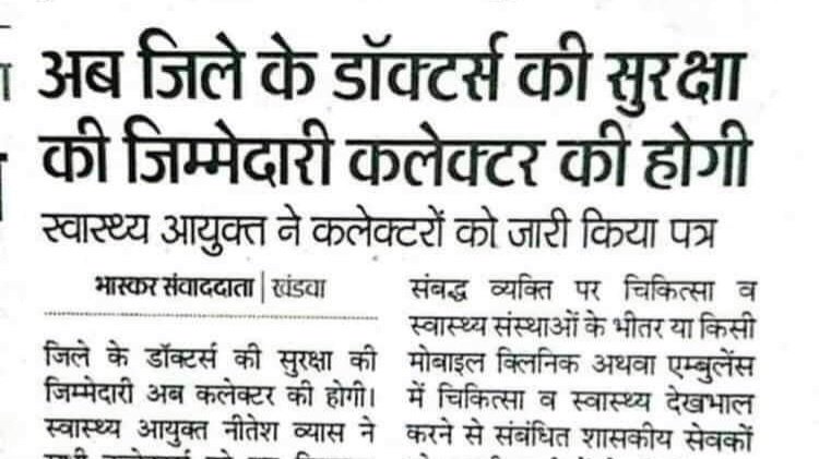 In a positive development, Madhya Pradesh Govt has written to District Collectors that they will be responsible for security of doctors at work.
