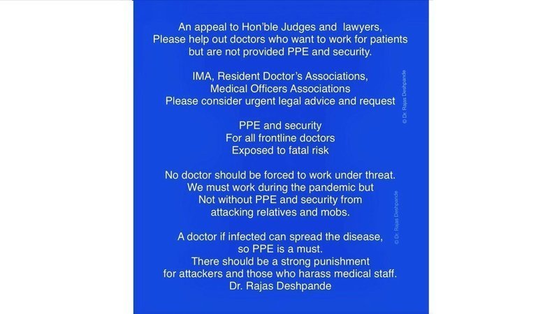 An appeal to Hon'ble Judges and lawyers, please help out doctors who want to work for patients but are not provided PPE and security.