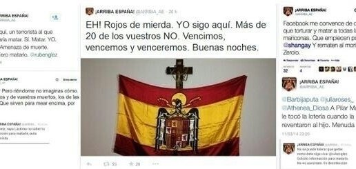 Esta petición es llevada a cabo para el cierre de la cuenta de Twitter @ARRIBA_AE, tras sus numerosas publicaciones en la red social, con múltiples insultos, faltas de respeto, amenazas, exaltación de la violencia e incluso deseando la muerte a personas de distinta ideología. Algunos ejemplos de tales publicaciones son: