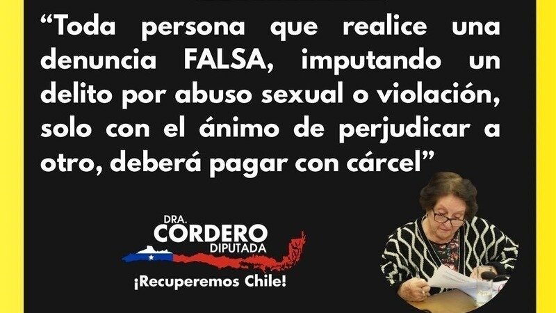 El día de hoy la diputada María Luisa Cordero en conjunto con la diputada Carla Morales presentaron un proyecto de ley contra las falsas denuncias de abuso sexual o violación qué viene a tipificar el delito de falsa denuncia modificando el código penal Así lo presentó la diputada María Luisa :