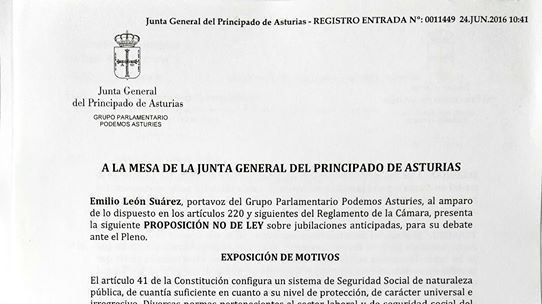 Esta mañana se ha presentado a debate, en la Junta del Principado, y ha sido aprobada por 28 votos a favor, la PNL (Proposición No de Ley) sobre la petición de Jubilación sin Penalizar.