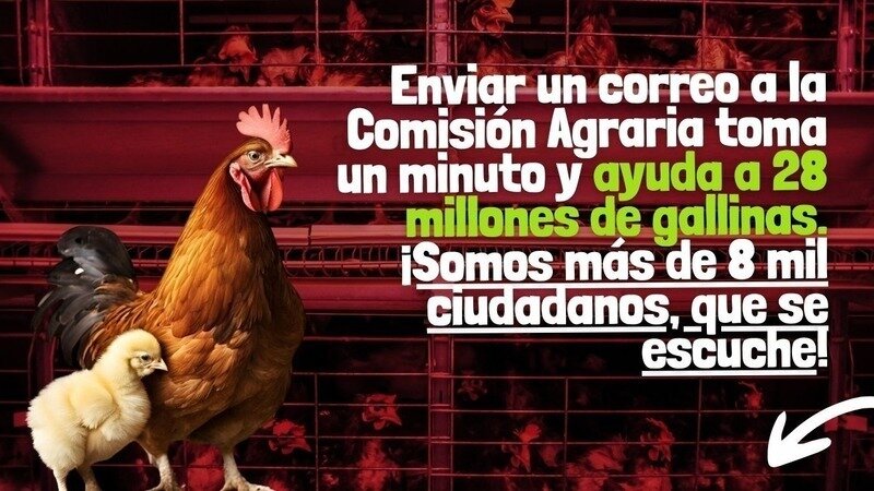 Soy Elsa, ¿me recuerdas? Te cuento que hoy queremos enviar un correo a cada congresista de la Comisión Agraria, porque no nos están haciendo caso. Si los 8 mil nos unimos para mandar ESTE MAIL, podremos conseguir una respuesta más rápida. Haz clic aquí y súmate a esta acción por el bienestar de 28 millones de gallinas ponedoras.