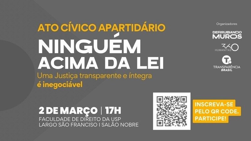 Nosso movimento cresceu, ganhou as manchetes e agora está pronto para uma nova etapa. Queremos convidar você para o nosso primeiro ato presencial, que acontecerá no dia 02 de março, no Largo São Francisco, em São Paulo.