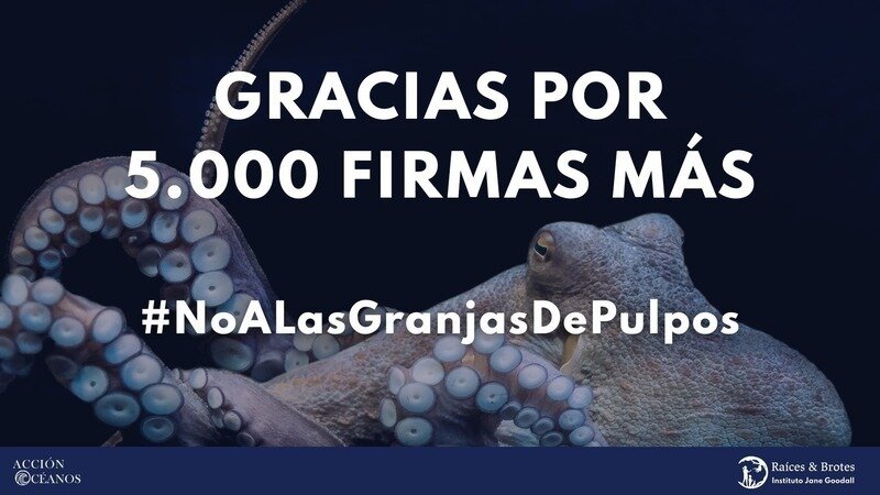 Mise à jour sur la pétitionPOR UNA LEY EUROPEA QUE PROHÍBA LA CRÍA DE PULPOS EN GRANJAS MARINAS¡Celebramos 5.000 firmas más y una acción en Gran Canaria!