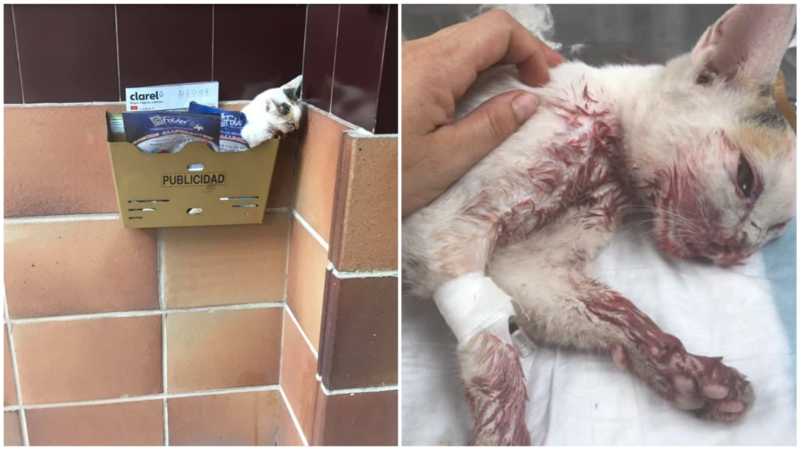 La vida de esta gatita duró cuatro meses, hasta que uno o varios indeseables la golpearon fuertemente y abandonaron su cuerpo agonizante en un buzón de propaganda de una calle de Huesca.