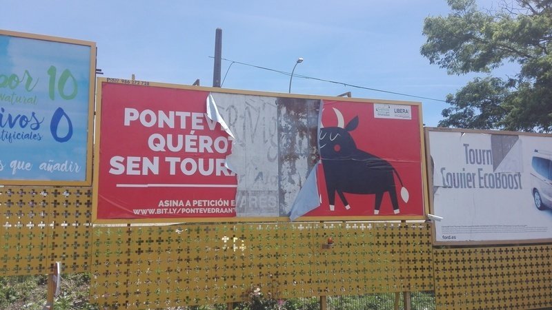 No nos van a callar, por mucho que provoquen daños en las vallas publicitarias que instalamos la semana pasada en Pontevedra, los taurinos jamás nos intimidarán.