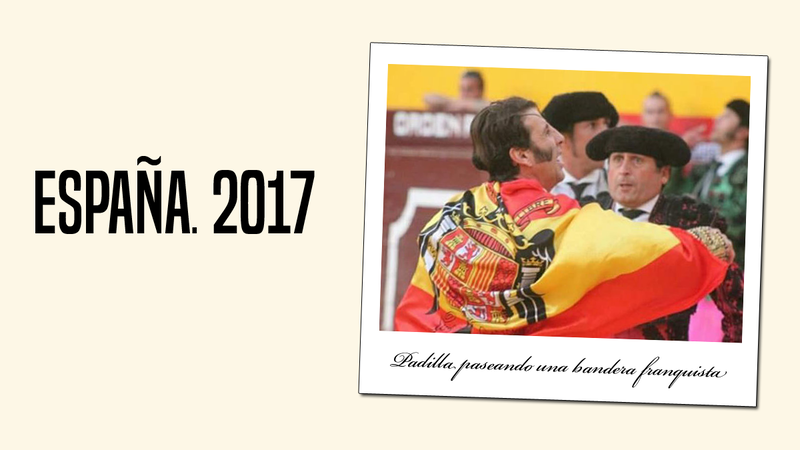 De especial gravedad es que un torero, aprovechándose de la protección legislativa de una actividad reconocida por su crueldad y maltrato, se dedique a promover una bandera que representa el sufrimiento, el dolor y la muerte de decenas de miles de personas, muchas de ellas todavía olvidadas en cunetas y fosas comunes.