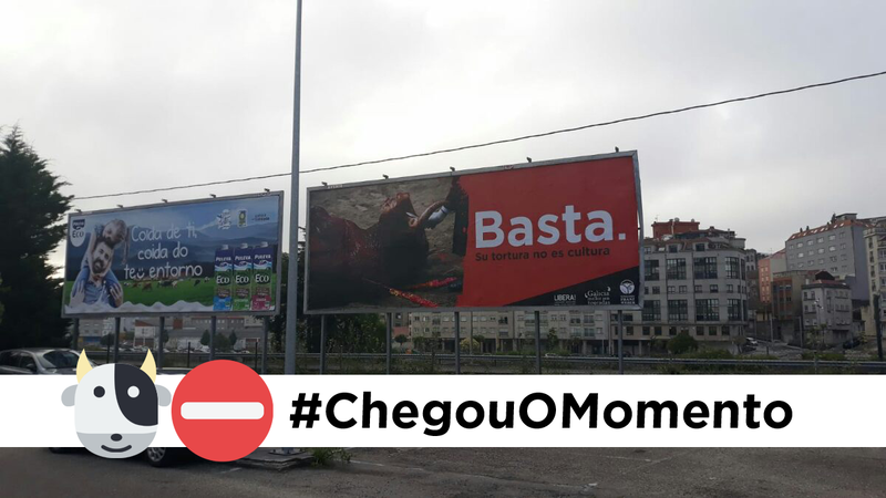 Ya está instalado el gran anuncio publicitario con el que recordamos la oposición política y social a las corridas de toros en Pontevedra.