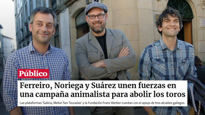 La noticia completa: www.publico.es/actualidad/ferreiro-noriega-suarez-unen-fuerzas-campana-animalista-abolir-toros.html