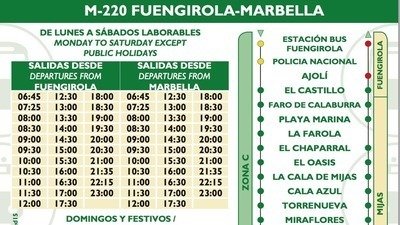 - The last bus departs from Fuengirola and from Marbella at 23:15h approximately. This forces many people to take a cab or spend the night wherever they are, especially on weekends.