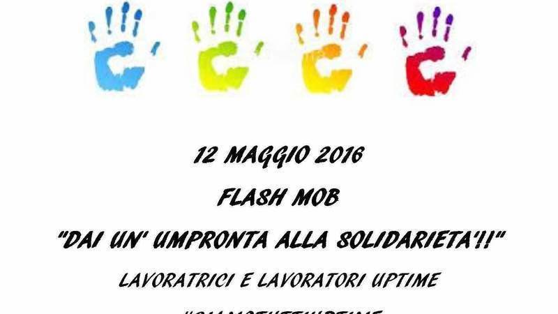 Giovedi 12 maggio, dalle h 14.00 flash mob "DAI UN' UMPRONTA ALLA SOLIDARIETA'!!" Chiunque si trovi a passare per Viale Europa 175, a Roma, sotto il Palazzo di Poste italiane, potrà regalarci, con un'impronta della sua mano su un lenzuolo, la testimonianza di solidarietà nei confronti di noi lavoratori Uptime!
