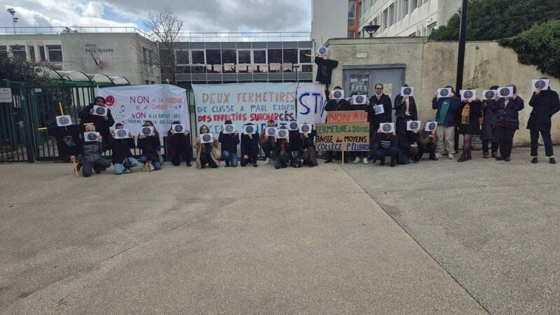 Parents et professeurs se sont réunis le lundi 11 mars 2024 à 12h15 devant le collège Paul Eluard. Ils ont été rejoints par le Maire de Guyancourt.