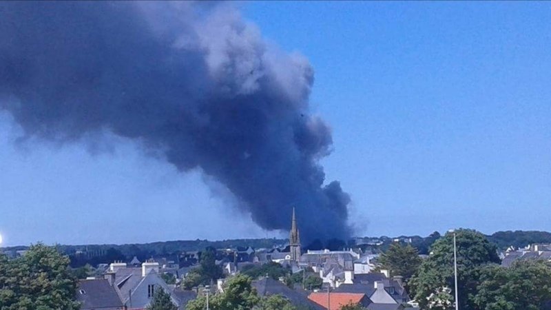 Pendant plusieurs heures, des fumées noires se sont répandues sur la ville de Landivisiau située à 500 mètres du lieu de l’incendie.