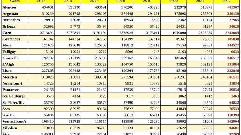 Partout ailleurs la fréquentation augmente de façon significative qu'il s'agisse de gares de connexion comme Argentan, Surdon, Granville ou d'autres dessertes comme Briouze, Flers, Vire, Villedieu...