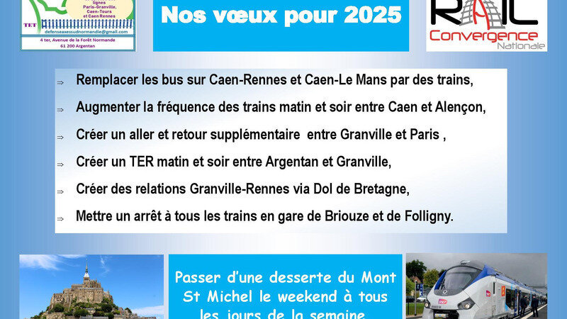 Actualización de la peticiónPOUR L'AMELIORATION DE LA DESSERTE FERROVIAIRE PARIS-GRANVILLE AU PROFIT DU SUD NORMANDIENouvelle année : la bataille pour le service public ferroviaire continue