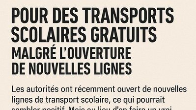A partir de la rentrée scolaire 2025-2026, les autorités ouvrent toutes les lignes de transports scolaires, ce qui pourrait sembler positif. Mais au lieu d'en faire un vrai progrès pour les élèves et leurs familles, cela devient une excuse pour faire payer un service qui devrait rester gratuit.