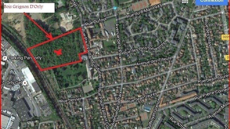 Voici la vue satellite du Bois Grignon d’Orly, condamné par la municipalité au «défrichement » puis à la construction.