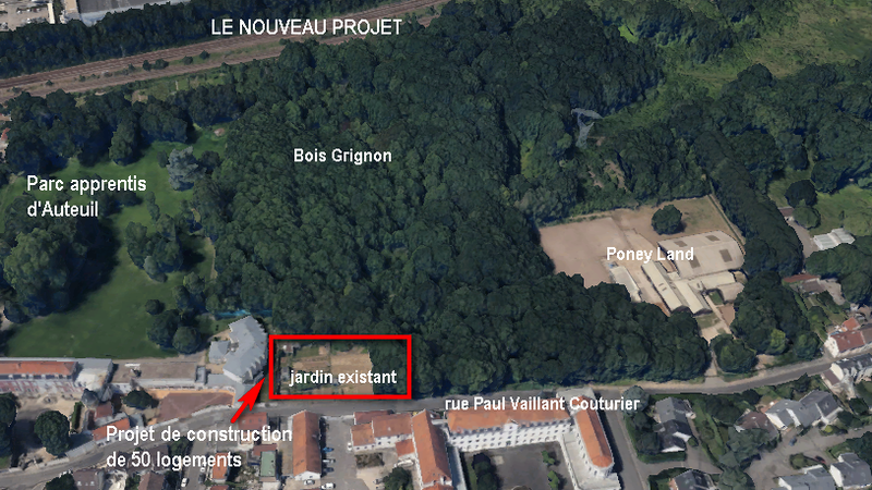 Des contacts vont se poursuivre avec la Direction des apprentis d'Auteuils pour essayer de trouver un compromis permettant la prolongation du bois sur une partie de leur propriété,qui serait classé espace vert public ,avec une possible ouverture angle Ernest de la Tour et Rue Paul Vaillant Couturier .
