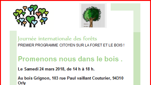 Petition update"Pour la préservation du bois Grignon d'Orly (94).Journée Internationale des Forêts / le 24 Mars / Venez vous promener au bois Grignon
