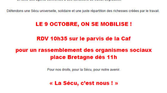 Actualización de la peticiónPour l'indemnisation satisfaisante des assuré-e-s des CPAM 44 & 85Proposition de participer à une manif "pour défendre la sécu à 100%" demain jeudi 9 octobre à nantes